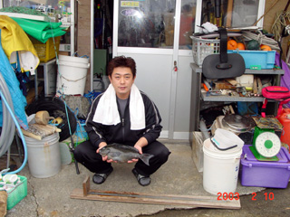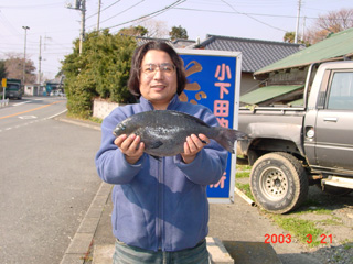 4/03中ノ島 土肥の小長谷氏 初、小下田で良型GET!