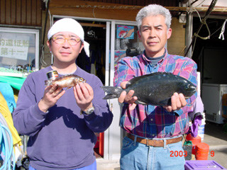 3/17トビシマ 伊豆クシロ研究会 右 佐藤則博氏 メジナ38.5-44cm 左 望月文敏氏 メジナ39-41.5cm ばきばきですy