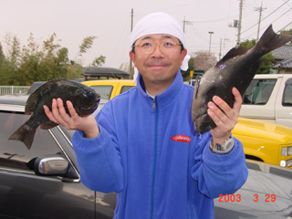 3/29カジハナ 柴田さん メジナ40cm クロダイ45cm