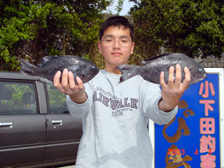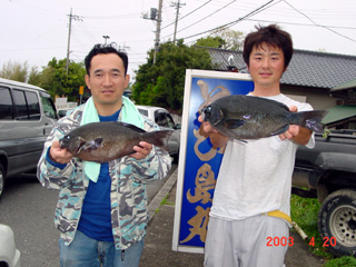 4/20 右、ムギネ 左 スズメ 右 メジナ43.5cm チ-ムタキグチ 浜田雅実氏 左 メジナ42.2cm チ-ムタキグチ 池谷氏