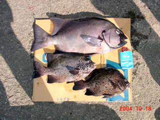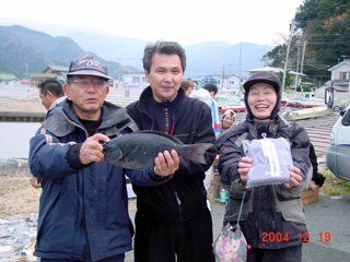 12/19チ-ムタキグチめじな釣り大会2004 佐藤夫妻と滝口氏です!