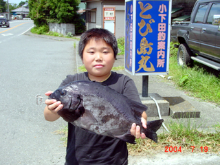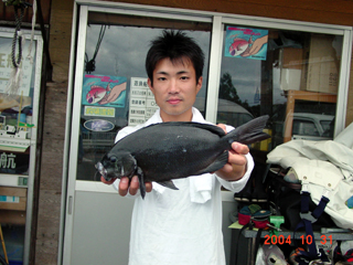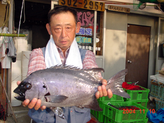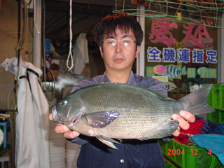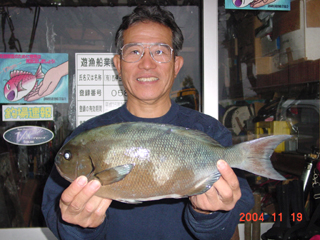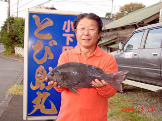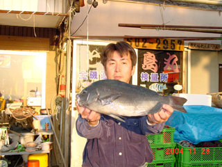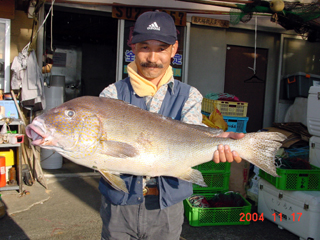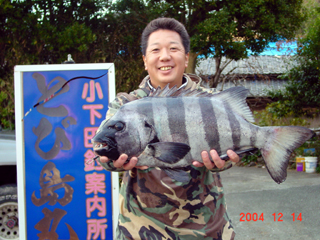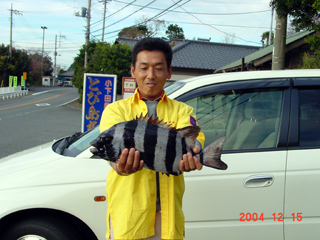 12/19チ-ムタキグチめじな釣り大会2004 優勝 伊豆くしろ研究会 宮部氏 2枚で90cm 小下田 女郎島 2位 年無会 仲井氏 2枚で89cm 仁科 白根 3位 チ-ムタキグチ 朝倉氏 2枚で86.9cm 安良里 ワレイシ 4位 伊豆くしろ研究会 鈴木氏 2枚で86.6cm 特筆すべきは、なんと!小6の渡辺Jr君 7位入賞 41.3cmと43.3cmの84.6cmです! おめでとう御座いました!