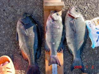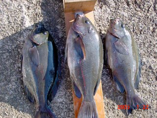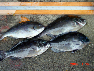 1/22ヤタガ 15.9℃ 薄濁り チ-ム タキグチ 杉山宏次氏 メジナ41ー45cm3枚 下が本日のメジナです