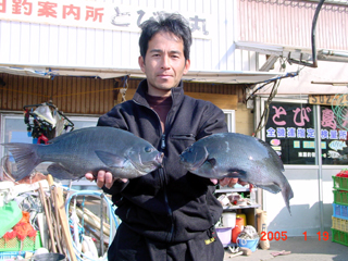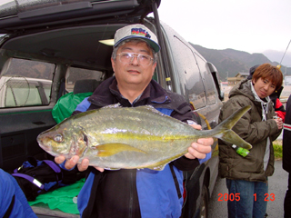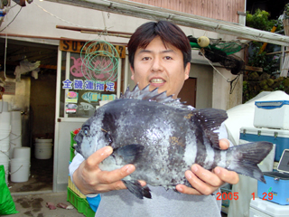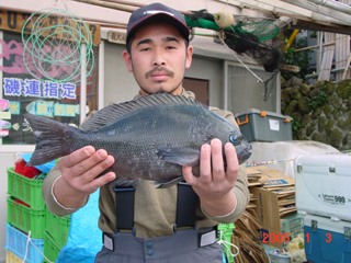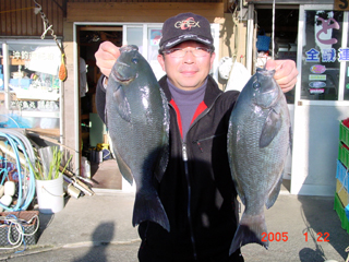 1/02カジハナ 18.0℃ 薄濁り チ-ム 磯本 石塚紀彦氏 メジナ41cmGET! |