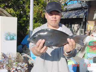 1/22カジハナ 15.9℃ 薄濁り 小田原 小林さん メジナ40cmGET!!