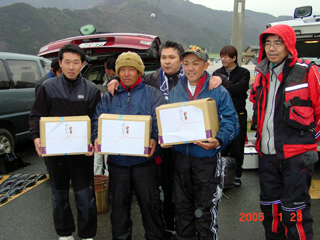 1/23伊豆くしろ研究会第7回大会 特別賞 左から 高木氏 マダイ52.7cm 榊原氏 マダイ48.8cm 進士氏 マダイ50.3cm