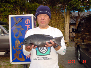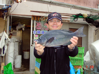 1/19トビシマ 16.8℃ 薄濁り 三島市 森川浩平氏 メジナ42cmゲッチュウ!!! やるねぇ~(-_-;)