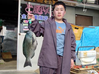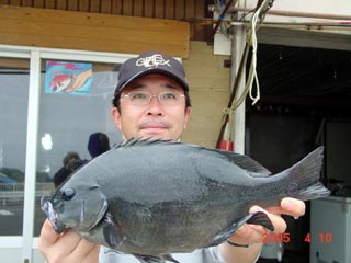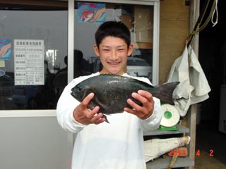 4/02マルボウ 14.0-15.3℃薄濁り 中学生の栗原氏 メジナ41cm 将来有望です!