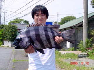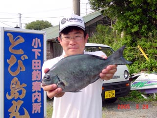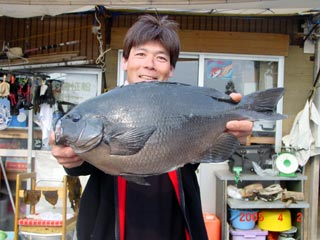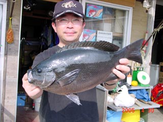 4/01中女郎 14.0℃薄濁り 掛川市 柏原宗悟氏 メジナ43cm! 立派なメジナです! |