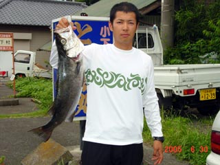 5/15トビシマ 18.4℃薄濁り チ-ムタキグチ 大野氏 根性の40cmオ-バ-!立派です!