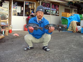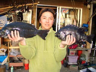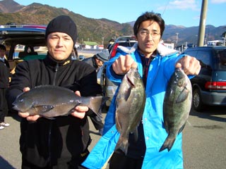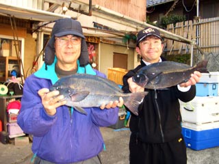 12/29トビシマ 14.5℃薄濁り 右 チ-ムタキグチ 杉山氏 メジナ40cm級 左 チ-ムタキグチ 加藤氏 メジナ45.4cm デカイの出てますね!