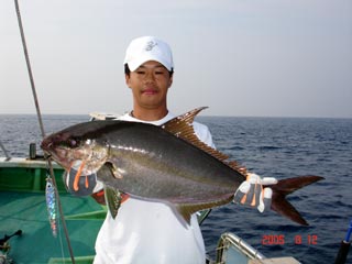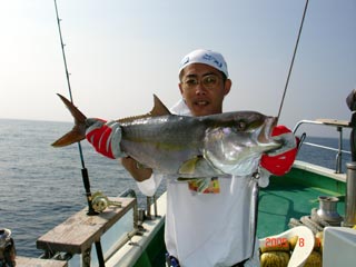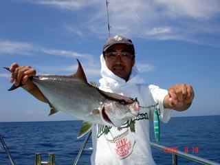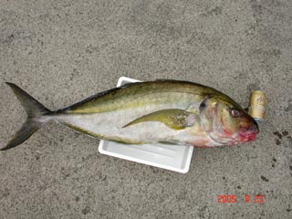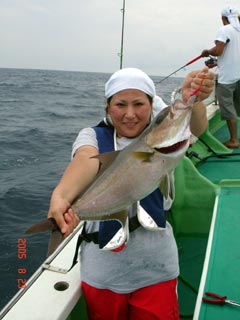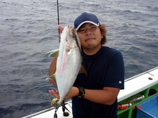8/08銭洲 沼津市 本間一吉氏 カンパチ2.7kg D,S 4オンス グリ-ン