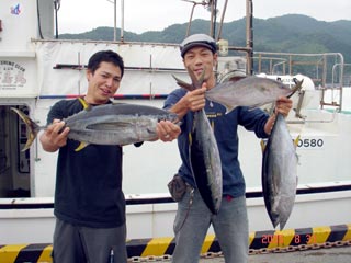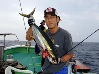 8/31銭洲 チ-ム池田 左 隊長の池田~マン キメジ5.15kg 左 浅野隊員 キメジ4.25ー5.4kg カンパチ2.0kg キラジグラ イワシ150g 水色が良くなったらイワシ!!ですね~(^。^)