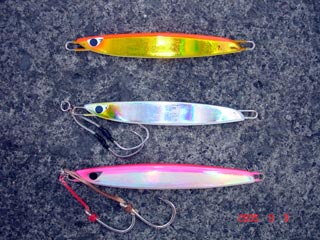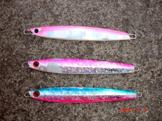 CB佐野氏のHITジグ CBシリ-ズ C1オレンジ120 カンパチ、赤ハタ C1 シルバ-120 カンパチ、赤ヤガラ C1 ピンク 150 カンパチ 本日濁り潮です!
