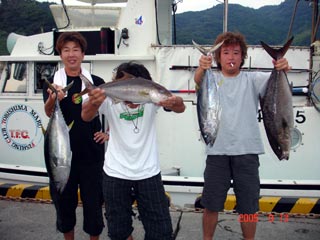 9/13銭洲 右から 毛利氏 カンパチ、キメジ Mr,X カンパチ ?.??kg 鈴木氏 キメジ