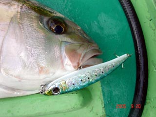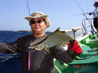 9/09銭洲 石川氏 カンパチをC1でGET! やはり濁りにはピンクか?????