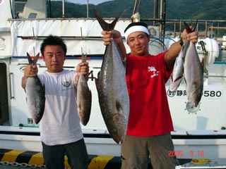 9/19銭洲 右 Z Maeda カンパチ1.5-6.35kg 左 長塚信之氏 カンパチ1.15-1.35kg