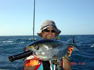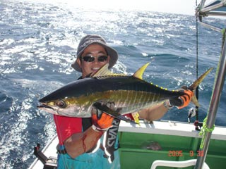9/30銭洲 またまた木下氏 キハダ7.9kg 船の中でキハダを追っかけまわしました! トップウォ-ター!最高~(^o^)丿