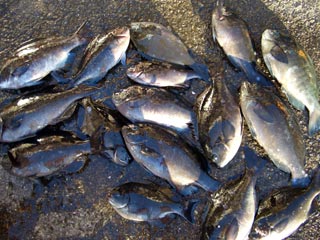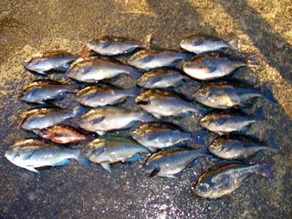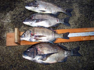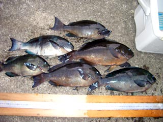1/07ワレイシ 15.6℃澄み 右 芹沢氏 左 深沢氏 メジナ25-42.2cm20枚 石鯛40.5cm 40オ-バ-GETです!おめでとう!