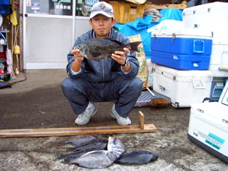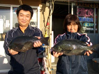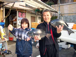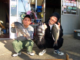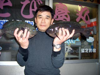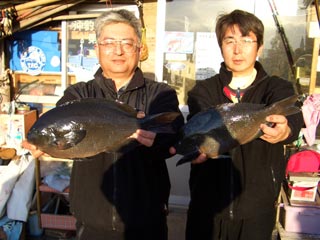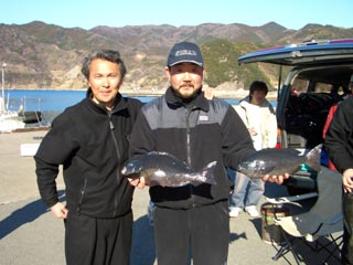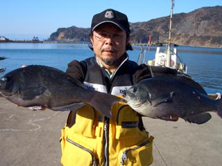 1/09トビシマ 15.6℃澄み 右 伊豆くしろ研究会井上氏 左 伊豆くしろ会 宍倉氏 メジナ40cmオーバー
