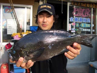1/01トビシマ 14.4℃澄み加減 伊豆くしろ会 田村祐司氏 メジナ48cm 元旦一発!元気モリモリ! めでたい♪めでたい♪ |