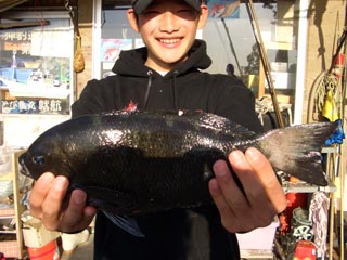 1/02中ノ島 15.2℃澄み 伊豆市土肥 植松 誉氏 メジナ43cm 40オーバー釣れれば上等! 今年も(^^♪ルンルンです! |