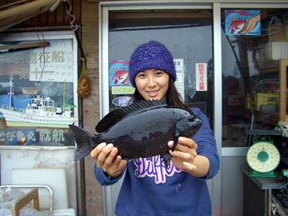 1/31トビシマ 14.4℃薄濁り 吉川ひとみサン メジナ38cm 茅ケ崎市 『魚心 亭』宜しくお願いします!