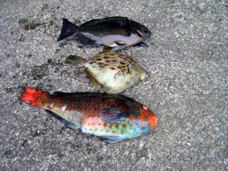 2/06カジハナ 13.5℃薄濁り チャレンジャー国嶋氏の釣果 メジナ30cm 頂き物のカワハギ 大きなブダイ 次回は顔もお願いしますm(__)m