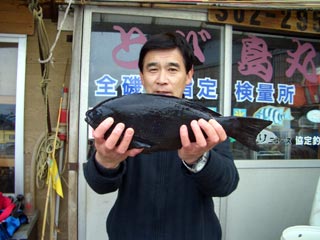 2/19トビシマ 12.6℃薄濁り 年無会 道永英寿氏 メジナ40.5cm