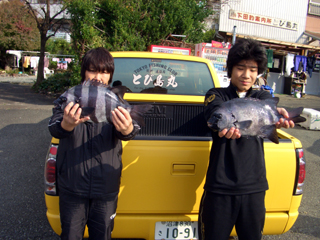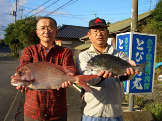 11/18 ムギネ&高島 21.2℃ 薄濁り ↑↓ 左 ムギネ マダイ55cm 戸田 伊東つとむ氏 右 高島 メジナ41cm 戸田 堤 康夫氏
