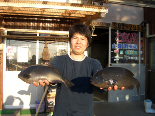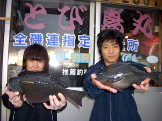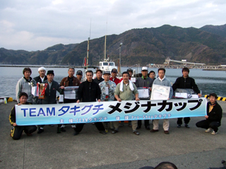 12/13 第14回チームタキグチ・メジナカップ開催 1位 細谷 仁氏 メジナ44.2cm1.4kg、39.1cm0.92kg 2位 寺田明弘氏 メジナ41.3cm1.1kg、34.6cm0.7kg 3位 飯島清志氏 メジナ38.1cm0.8kg、34.7cm0.7kg 4位 中村秀明氏 メジナ34.6cm0.6kg、33.2cm0.55kg 5位 村松貴博氏 メジナ38.7cm0.95kg、28.8cm0.4kg 6位 石田英敏氏 メジナ33.3cm0.55kg、32.4cm0.5kg