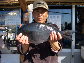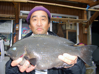 3/01 中ノ島 14.9℃薄濁り↑ 川崎市 長野正彦氏 メジナ42cm