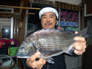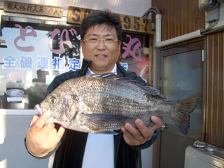 01/31 中女郎 14.3℃薄濁り チームタキグチ会長 細谷 泉氏 黒鯛35-45cm3枚