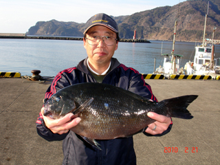 02/14 スズメ 15.3℃澄み↑↑↑ 東京都 大久保隆司氏 メジナ42.5cm