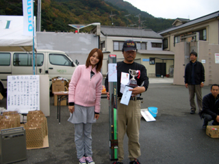 11/14 サンスイグレトーナメント2010 優勝 辺見公蔵氏 メジナ3枚 3550g おめでとう御座いました! プレゼンテーターは遠藤いずみさんです! |