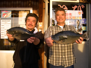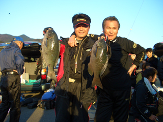 11/14 サンスイグレトーナメント2010 第3位 一條勝則氏 メジナ3枚2420g 遠藤さんとツーショットで(*^_^*)ニコニコです!