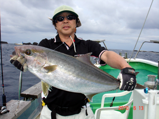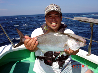 6/13 銭洲 富士市 井出 潔氏 ルアカン4.1kg ルアー:スロースキップFB200g アルミシルバー メキメキと腕を上げてます!