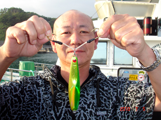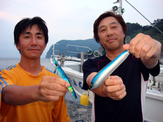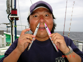 7/05 三澤氏の御自慢(^u^) 必殺!PACHIジグ ハオリ160gグリーンゴールド 船長もやられました(>_<)