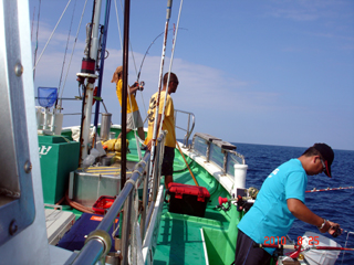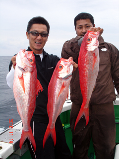 5/09 イナンバ ルアーメダイ入れ食い!6.5kg頭で船中35本! カツオ3.35kg頭で11本!ルアカン1.9kg頭で3本! 大型ラインブレイク有り!