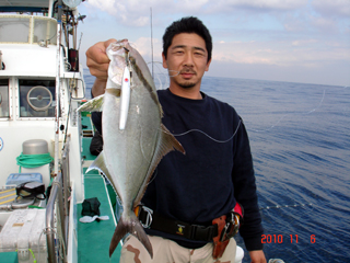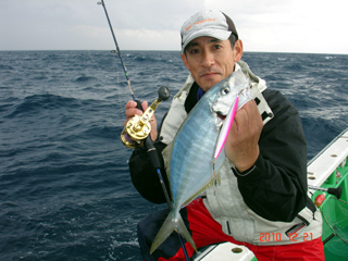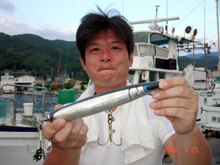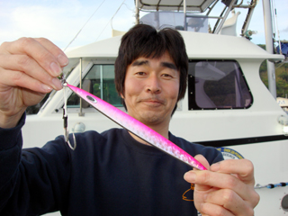 8/08 銭洲 宮下氏のカンパチジグ アイルメタルCS110gピンク