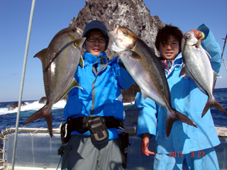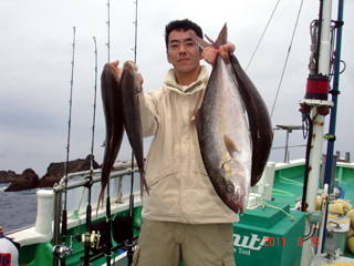 5/03 銭洲 沼津市 岩崎盛大氏 カンパチ4本GET!