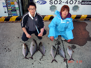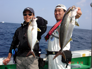 3/27 イナンバ 草ケ谷氏&飯田君 カンパチばりばり!気合入れてきます! |