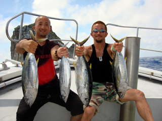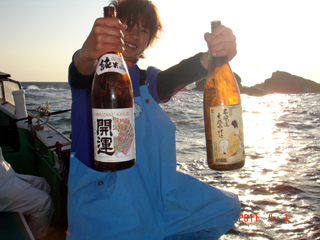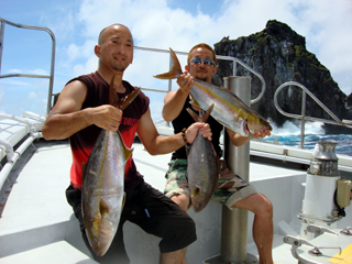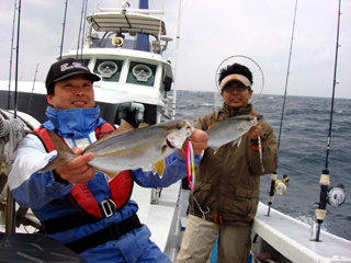 4/01 銭洲解禁 東海大学海洋学部 釣魚部 野平氏 大滝氏 お決まりのポーズ