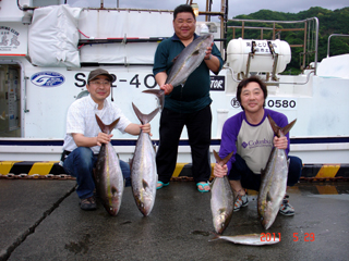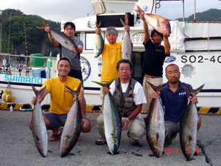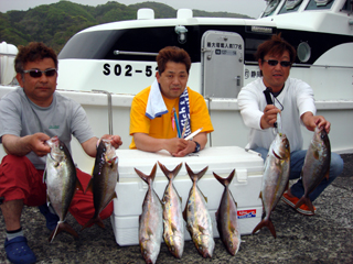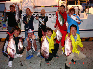 6/04 銭洲 ルアマサ9.9kg1本、ルアカン0.75-1.4kg2本 赤烏賊泳がせカンパチ4.4-9.4kg6本 シマアジ2.25kg、マダイ0.9-4.5kg2枚