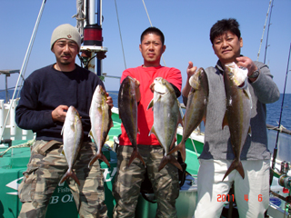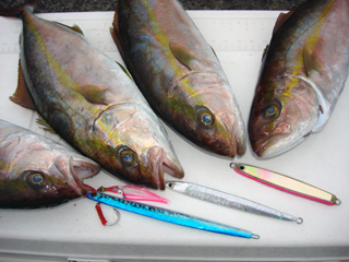 4/01 銭洲解禁 カンパチ1.45-4.8kg8本(ルアー7本) マダイ2.0-4.8kg2枚、シマアジ
