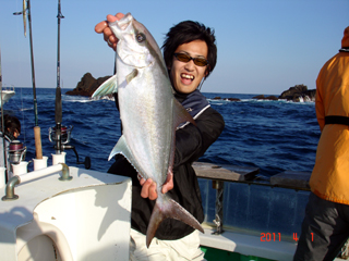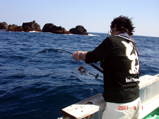 4/01 銭洲解禁 東海大学海洋学部 釣魚部 佐藤氏 なかなかやるなぁ~(^_^)