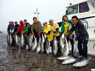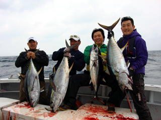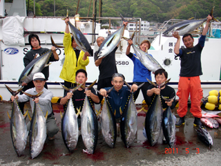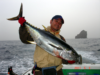 5/01 イナンバ 白垣氏&佐野氏&永井氏&野秋氏 マグロ4連続ヒット!! 永井氏 メロン屋ジグ試作でビン長11.85kgGET!