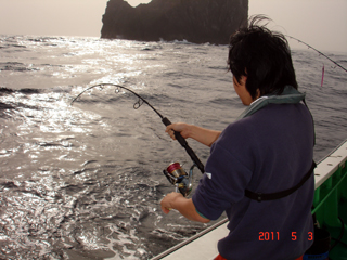 4/06 銭洲解禁4日目 初!とび島丸☆ 柿沼氏 頑張って、ルアカン2本GET!