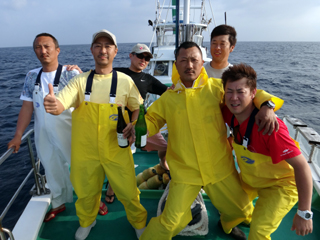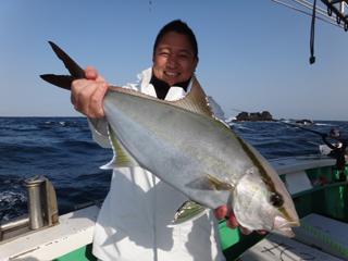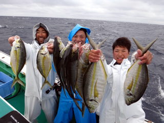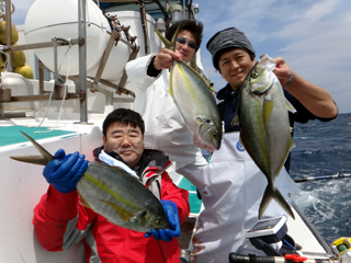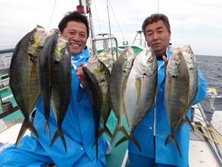4/14 銭洲 国島副船長、安達氏、飯田助手 シマアジばりばりです!