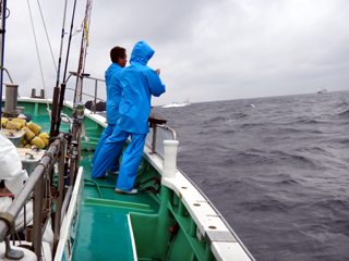4/09 銭洲 三澤氏、島村氏、財津氏の解禁式 お神酒を撒いて釣行安全を祈る!